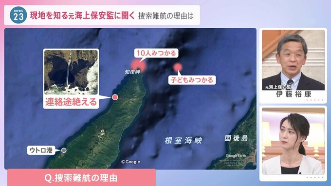 知床半島沖で26人が乗った観光船が消息を絶ってから3日目。捜索が難航しているのはなぜなのか?海上保安庁の現場トップ・海上保安監などを歴任した伊藤裕康さんに聞きました。 小川彩佳キャスター:事故当日の観光…