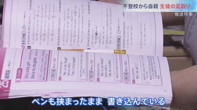 「こんなんも勉強していました。教材でペンも挟まったままで、本に書き込んでいる」