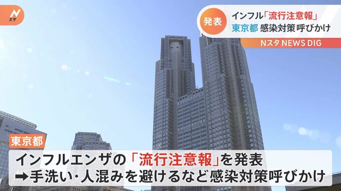 東京都はインフルエンザの感染者が増えていることから、「流行注意報」を発表しました。東京都は先月29日までの1週間で、都内の9か所の保健所で1つの医療機関あたりのインフルエンザの感染者が10.0人を超えたと発…