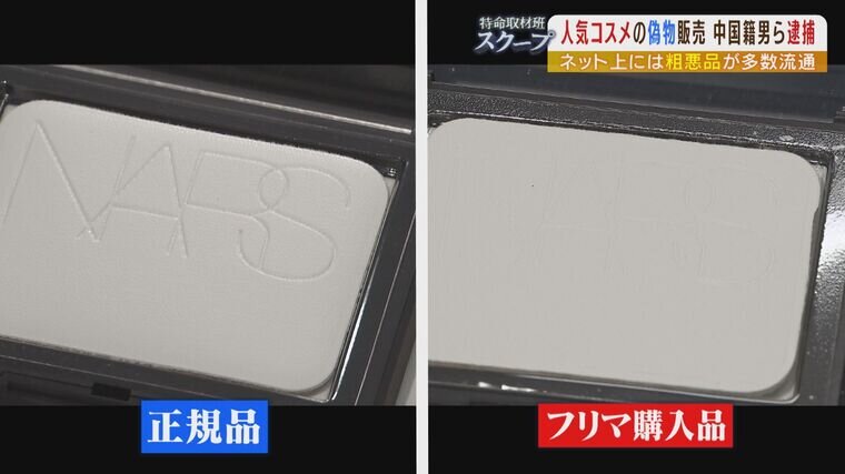 本物と比べてみると、パフに書かれた「NARS」の文字が薄く、一部欠けているものもある。
