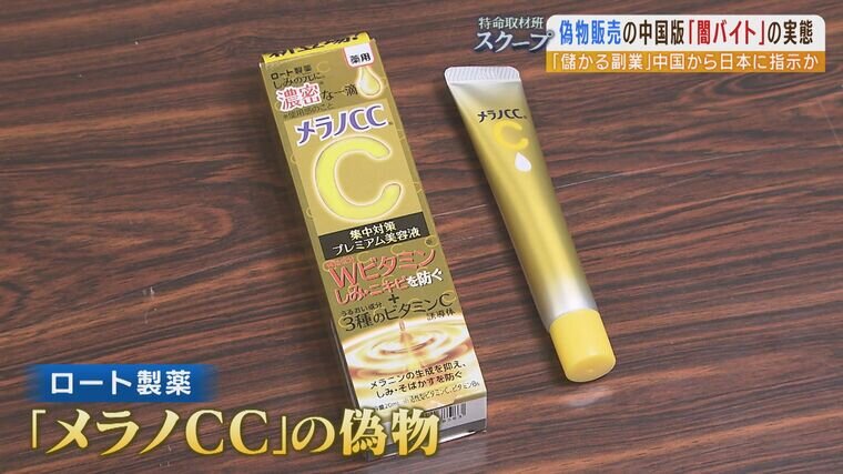 警察が「レッド」に行きついたのは別の偽化粧品の捜査がきっかけだった。それは「ロート製薬」の美容液「メラノCC」の偽物だ。大阪府警は去年11月、中国籍の女(31)を逮捕。この女も「レッド」の売り子に応募し、偽物の美容液を販売していたとみられている。