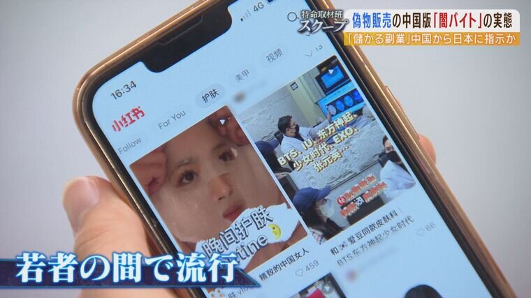 捜査関係者によると、偽物を販売する人にはある共通点があるという。それは中国のSNSアプリ「レッド」。動画や画像投稿の他にネットショッピング機能もあり、中国の若者の間で流行しているという。