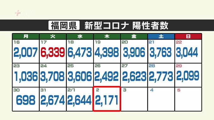 新型コロナウイルスの感染状況です。福岡県では2日、新たに2171人の陽性が確認されました。減少傾向が続いています。60代以上の男女6人が亡くなっています。1日時点で、病床使用率は43.2%、重症…