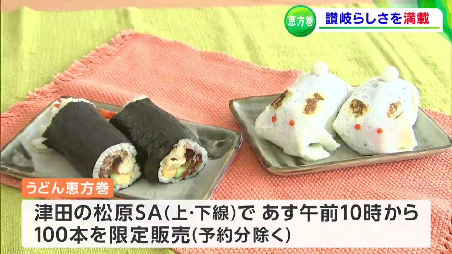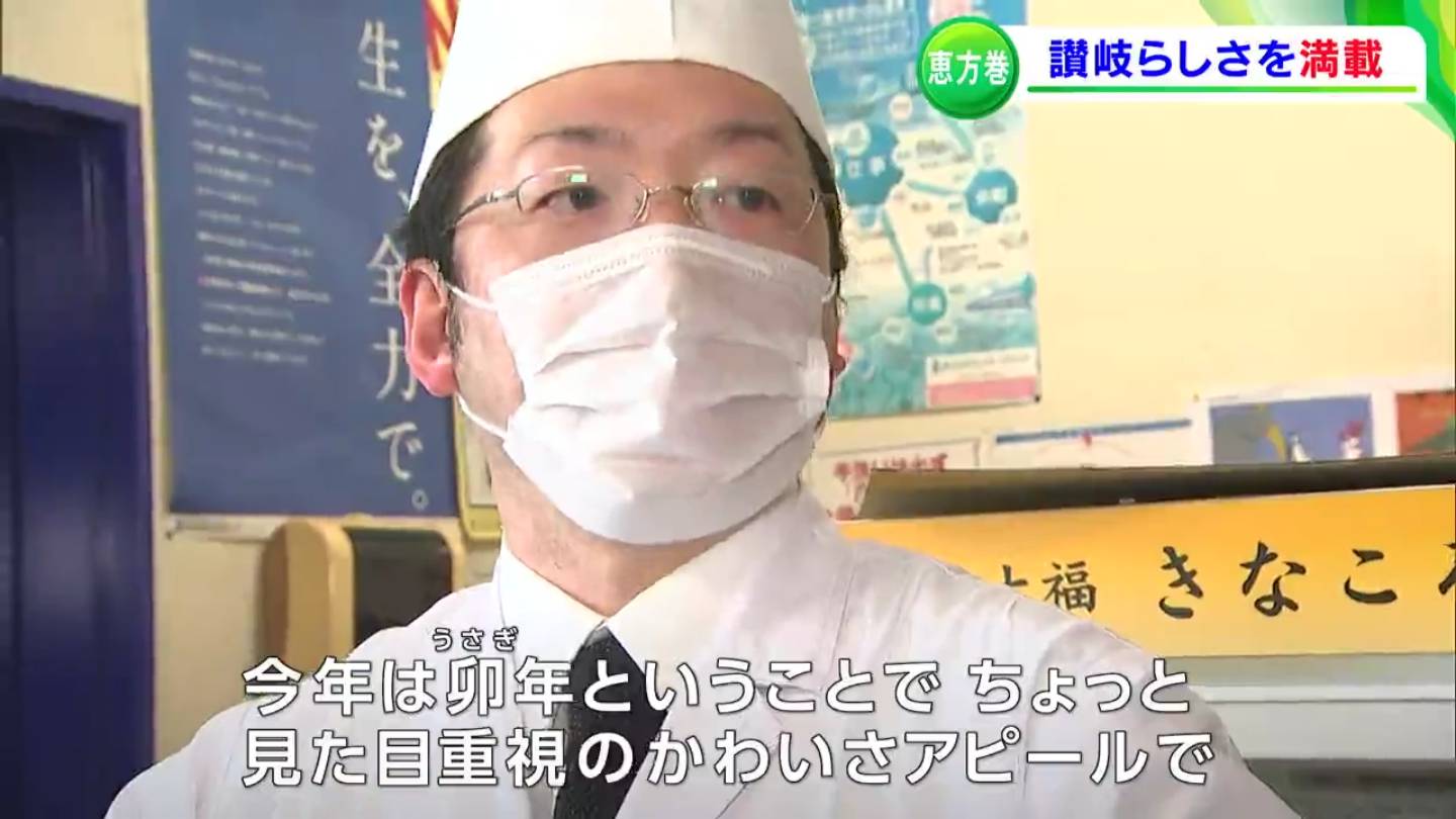 明日(3日)は節分、節分といえば欠かせないのが恵方巻です。毎年恒例となっている讃岐ならではの恵方巻が、今年も販売されます。アイデアを出し合って作った「可愛さアピール」の恵方巻です。
