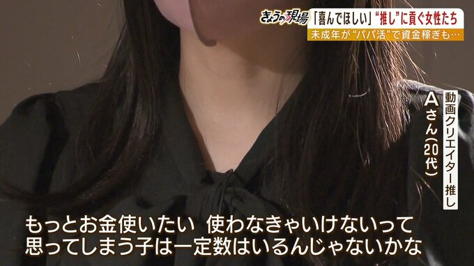 「この人を応援したい、この人にお金を使ったら喜んでもらえる、もっとお金使いたい、使わなきゃいけないって思ってしまう子は一定数はいるんじゃないかなと思います。やっぱりパパ活とかリフレとかに行っちゃう気持ちもわからなくはないなと思います」