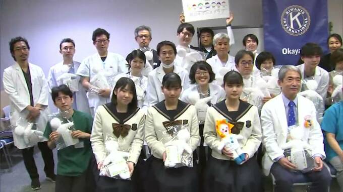 闘病生活を送る子どもたちの心を癒すための人形、「キワニスドール」の贈呈式が岡山市北区の岡山医療センターで行われました。高校生が、病気と闘う子どもたちのために作った真っ白なキワニスドールです。社会奉仕…