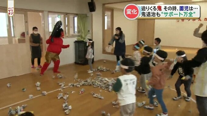 きょう2月3日は節分です。熊本市の保育園でも豆まきが行われました。元気なかけ声で準備万端の園児たち。しかし、いざ部屋に鬼が入ってくると…それでも鬼を追い払おうとする勇敢な園児たち。ただ、その手に握ら…