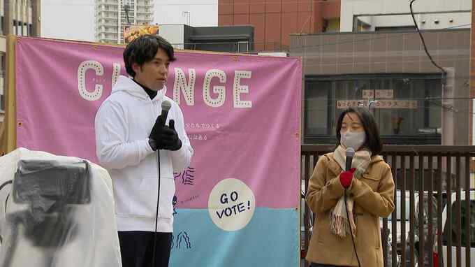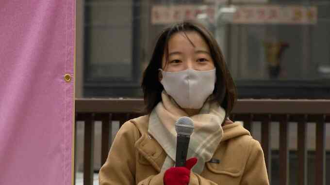 先週土曜日、雪が舞う厳しい寒さの中、小倉北区の広場で開かれたイベント。市長選について語るのは学生団体「VOTE FOR 北九州」の代表で、北九州市立大学3年の中牟田リラさんです。