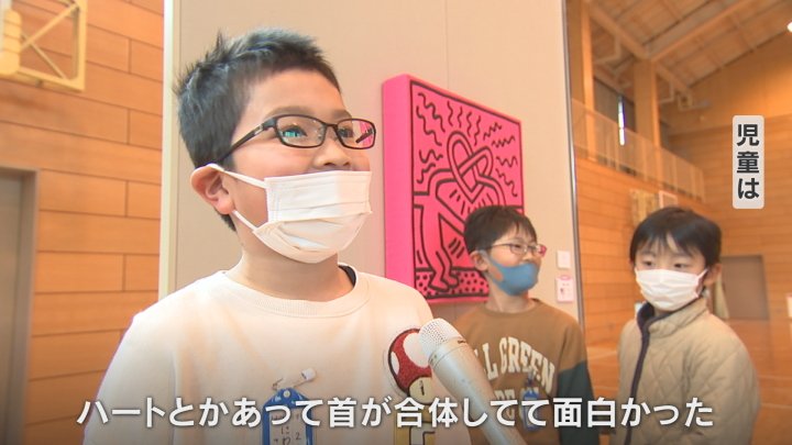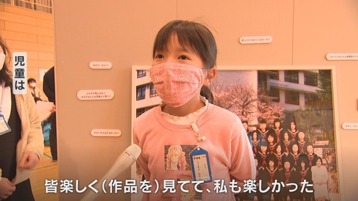 2月3日は児童や保護者が見て回り、児童たちは作品に込められた思いを考えながら、映像や立体作品といった現代アートを体験しました。