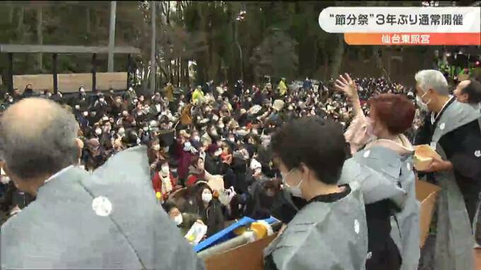 きょうは2月3日、節分です。宮城県内の神社などでは、豆まきが行われました。このうち仙台東照宮では、3年ぶりに通常規模での開催となり、大勢の人が詰めかけました。「鬼は外、福は内」節分祭は、あすの立春を前…