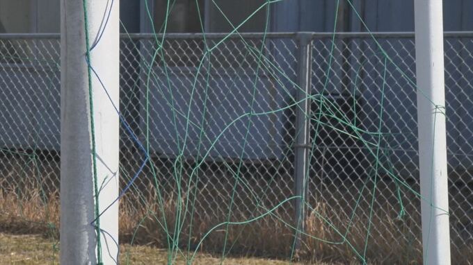 さび付いたバスケットゴールに、ネットがやぶけたサッカーゴール。