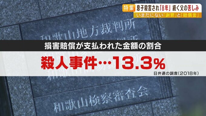 日本弁護士連合会が2018年に行った調査では、加害者に賠償を求めたケースで、裁判などで認められた賠償額のうち実際に被害者に支払われた金額は、殺人事件で13.3%、強盗殺人事件で1.2%などとほとんど支払われていないのが現状です。