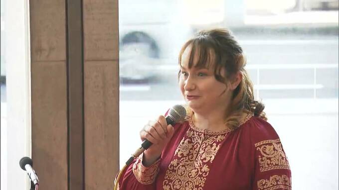 中盤には、倉敷市に住むウクライナ人、リリヤ・バビィさんがステージに上がり、母国の現状を伝えた上で、ウクライナへの関心を持ち続けてほしいと訴えました。