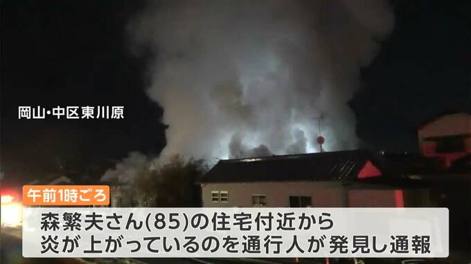 5日午前1時ごろ、岡山市中区東川原の森繁夫さん(85)の住宅付近から炎があがっていると通行人から通報がありました。