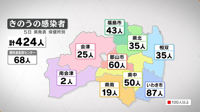 新型コロナウイルスについて県内では4日、424人の感染が確認されました。【内訳】いわき市で87人郡山市で60人県 中で50人福島市で43人県北と相双で各35人会 津で25人県 南で19人南会津で25人陽性者登録センター…