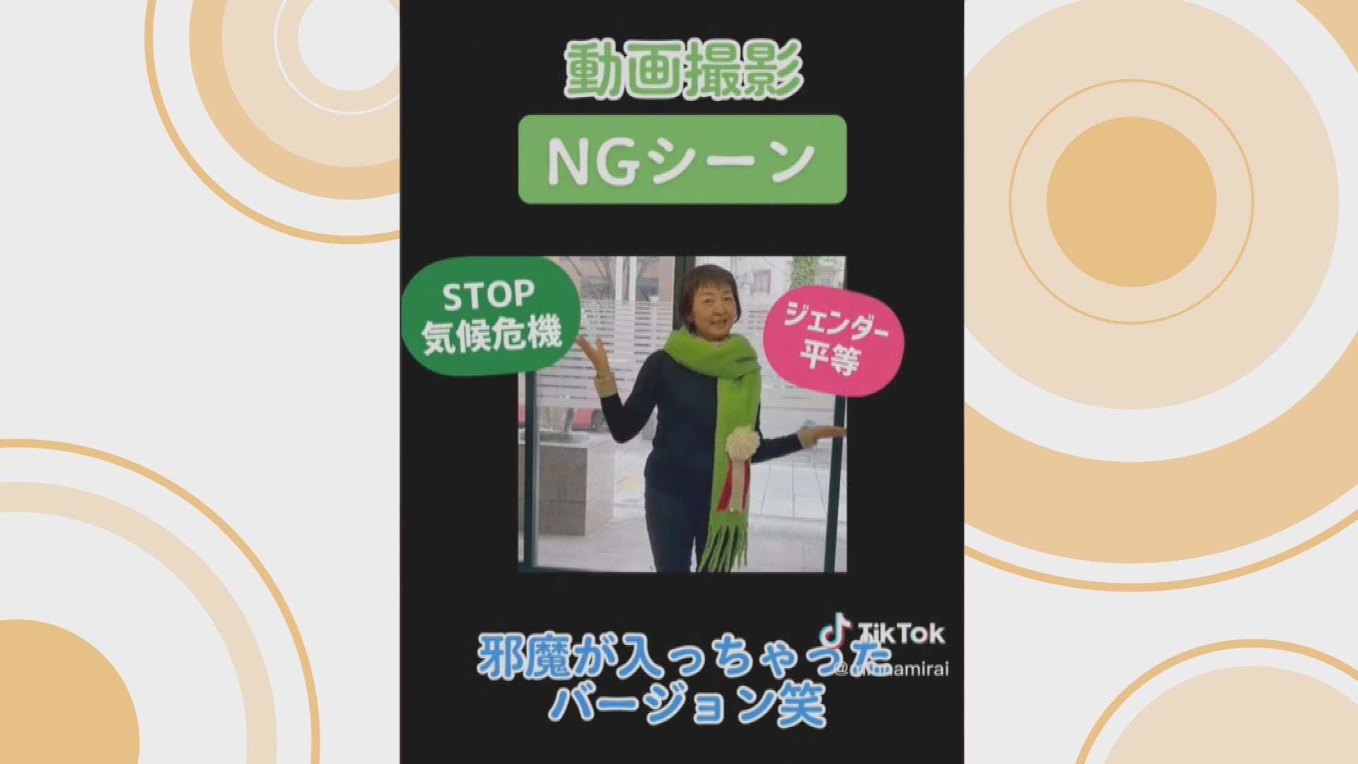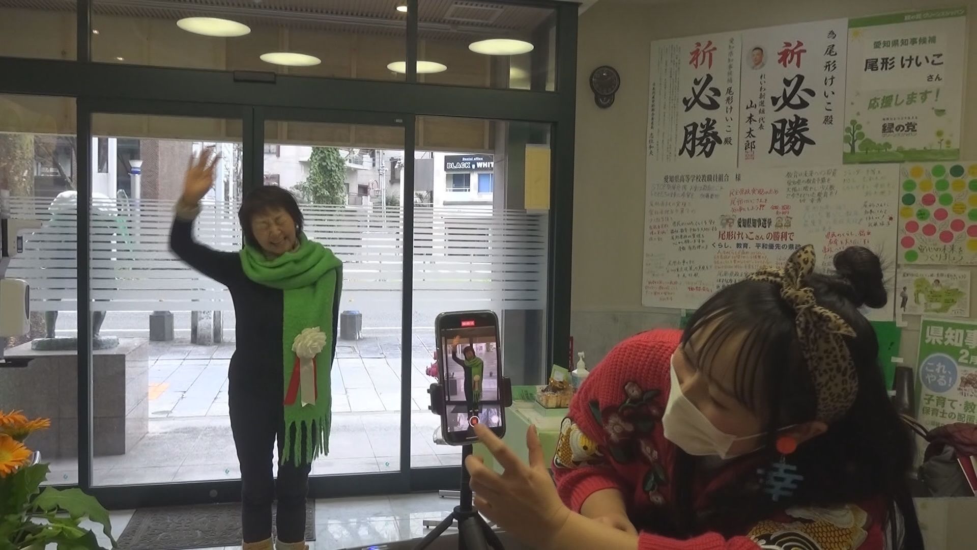 サングラスをかけ、あえて顔を隠すのは、掲げた公約を見てもらうため。共産党が推薦する尾形慶子さん。