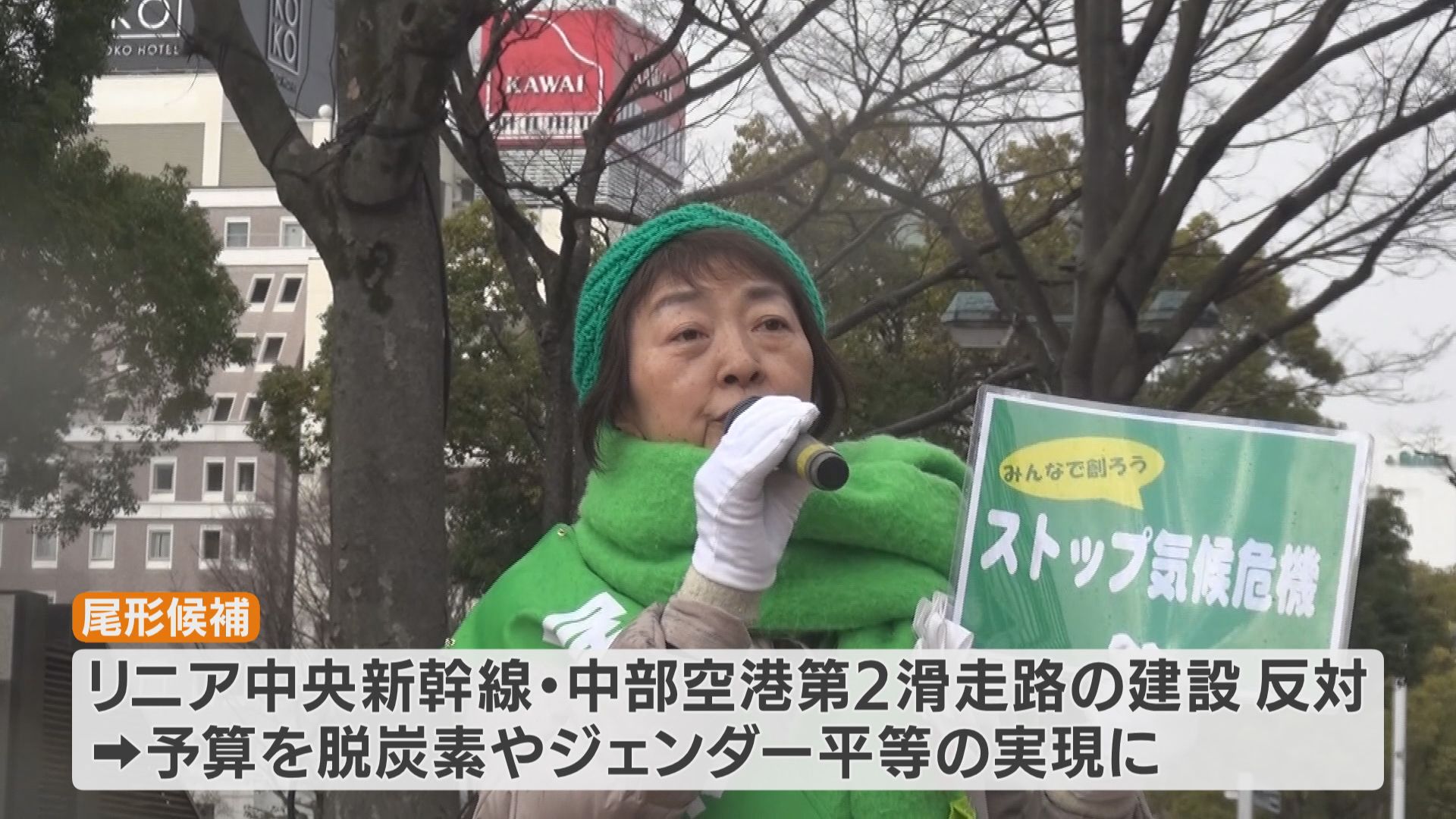 リニア中央新幹線や 中部空港第2滑走路の建設に反対していて、その予算を脱炭素社会やジェンダー平等の実現に活用すると訴えてきました。
