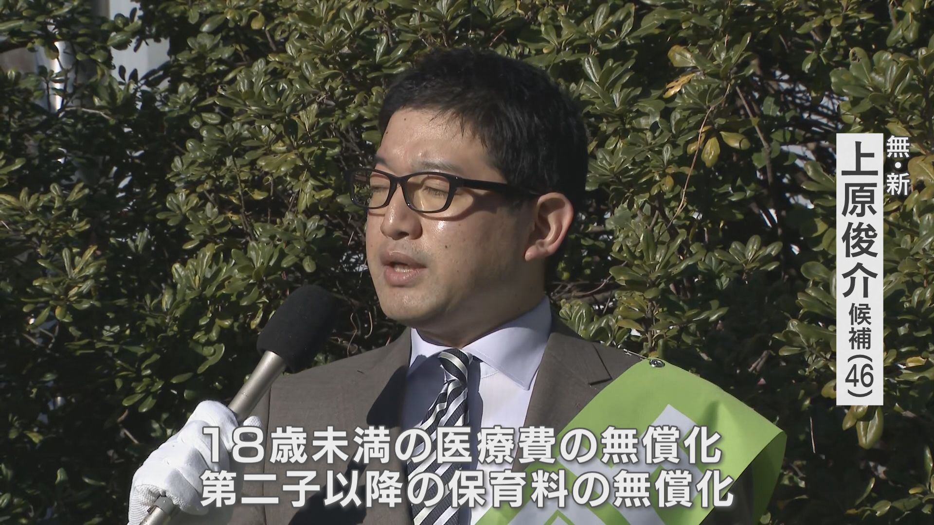 薬剤師の上原俊介さんは18歳未満の医療費や第二子の保育料の無償化の実現などを目指すとして、支援を呼びかけてきました。