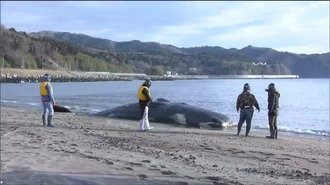 4日、宮城県石巻市の北上川河口に流れ着いたクジラの死骸を埋める作業が始まりました。4日、石巻市の北上川河口に漂着したマッコウクジラとみられる死がい。石巻市は、6日朝から業者の協力のもと重機を入れ埋却作…