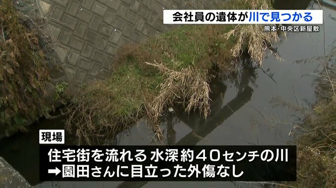 現場は住宅街を流れる水深およそ40センチの小さな川で、園田さんに目立った外傷はありませんでした。警察は事件と事故の両面で調べを続けています。