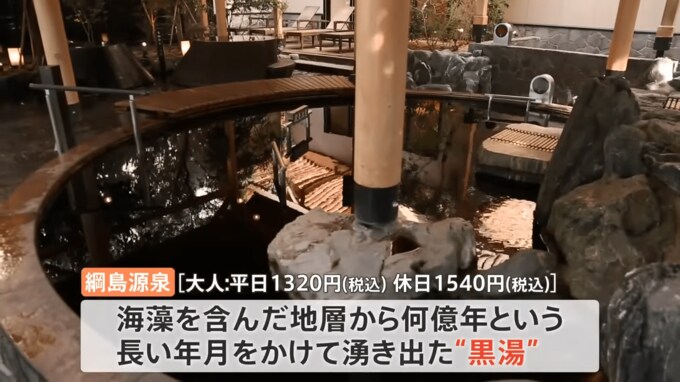 綱島に沸く温泉は海藻を含んだ地層から何億年という長い年月をかけて湧き出た“黒湯”。炎症を鎮め、皮膚をなめらかにするため