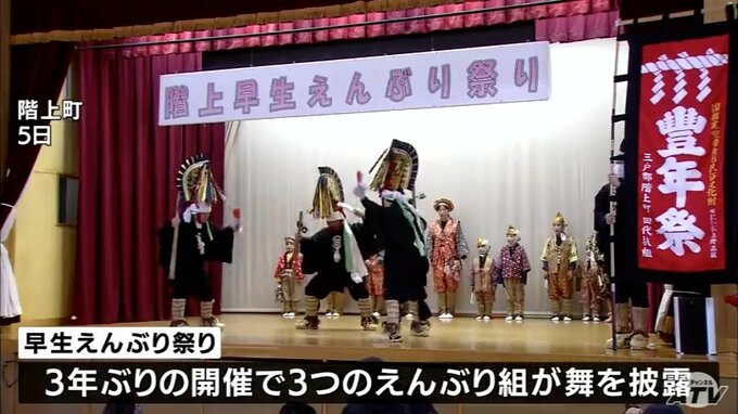 新型コロナでの中止を経て3年ぶりに開催された「階上早生(はしかみわせ)えんぶり祭り」は、地元の田代(たしろ)、鳥屋部(とやべ)、平内(ひらない)の、3つのえんぶり組が、地域に春を呼び起こす勇壮な舞を披露しました。