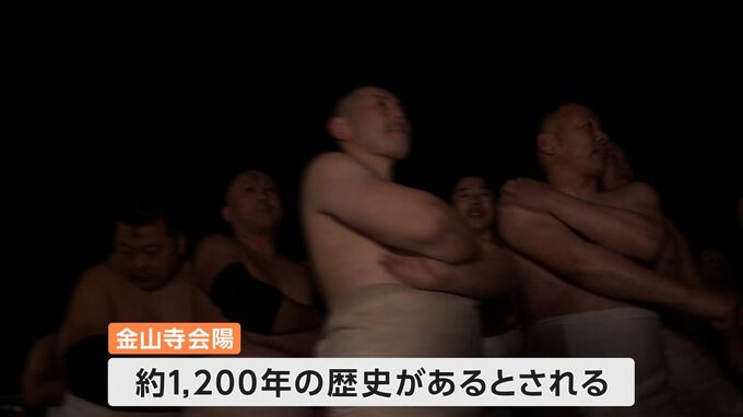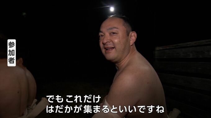 午後8時過ぎ、境内にまわし姿の男たちが集まってきました。