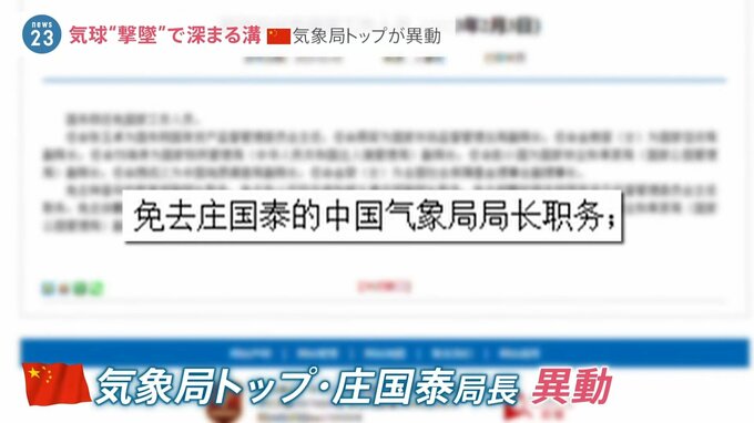 こうした状況の中、中国・気象局トップの庄国泰局長が異動になっていたことが分かりました。