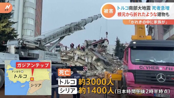トルコ南部で起きた大地震。一夜が明けた現地では死者が急激に増え、隣国のシリアを含め4400人近い市民らが犠牲となっています。地震発生からおよそ30時間が経ちました。被災地では寒さの中、崩壊した建物の中に取…