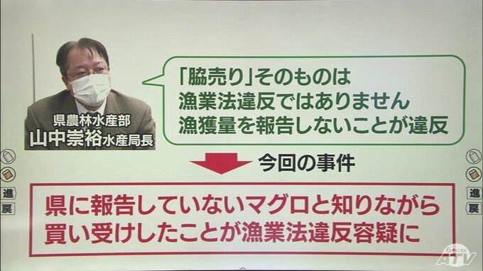 「脇売りそのものは漁業法違反ではありません。漁獲量を報告しないことが違反」