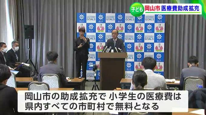 子どもの医療費に関し、岡山市は来年から小学生の通院費を無料にする方針を発表しました。入院費では高校までを無料化するとしていて、今回の拡充で県内全市町村の小学生が無料で医療を受けられるようになります。大森雅夫岡山市長が会見で明らかにしました。