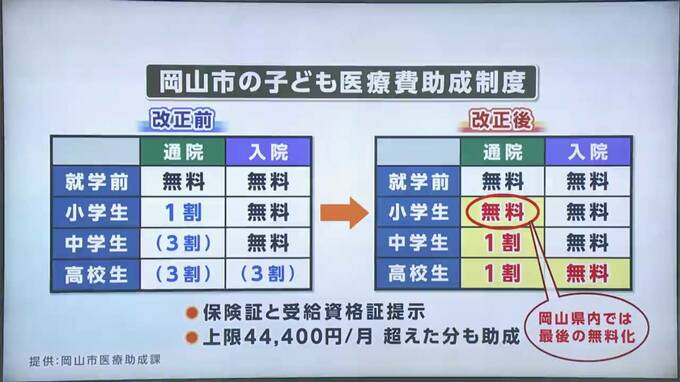 今回、岡山市が助成を拡充する方針を示したことで、来年以降、県内では全ての市町村で小学生の医療が無料となります。また高松市でも、中学生までの通院・入院の医療費は無料となっています。