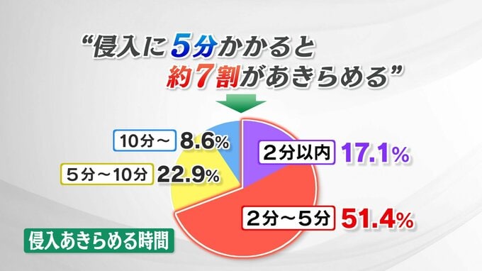 さらに、5分以上かかると9割以上が侵入をあきらめています。