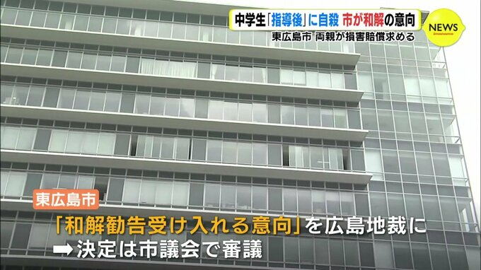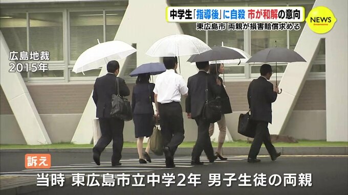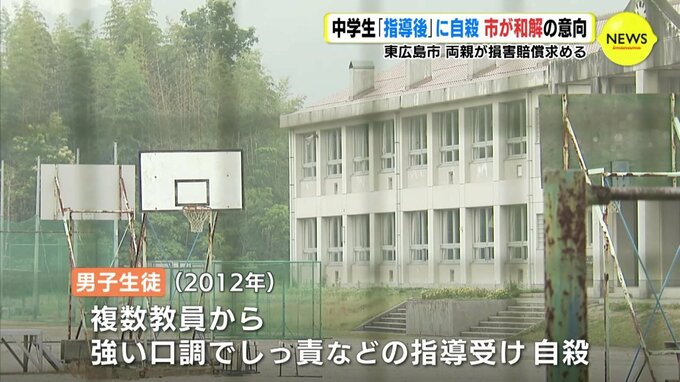 2012年、広島県東広島市で男子中学生が自殺したのは、教員の行き過ぎた指導が原因だとして、両親が損害賠償を求めていた裁判で、市は和解する意向を明らかにしました。