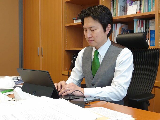 元不動産業者の岩谷良平衆院議員。現地の視察中にも「売却した時の資産価値と(土地を活用する)行政ニーズの比較検討はするのか」などと財務省の担当者に矢継ぎ早に質問をしていた。