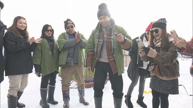 海外からの観光客の入国制限緩和を受けて、タイの人気歌手が福島県でワカサギ釣りを楽しみました。「しゅっぱーつ!」7日に桧原湖を訪れたのは、タイの人気歌手ガン・ナパットさんとそのファンたちで、県がツアー…