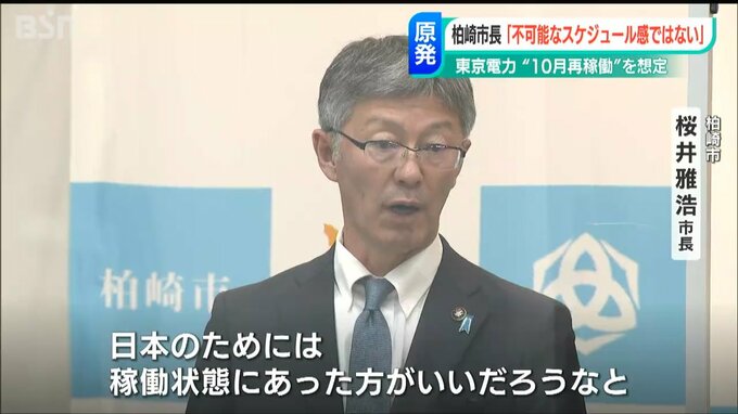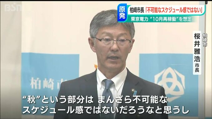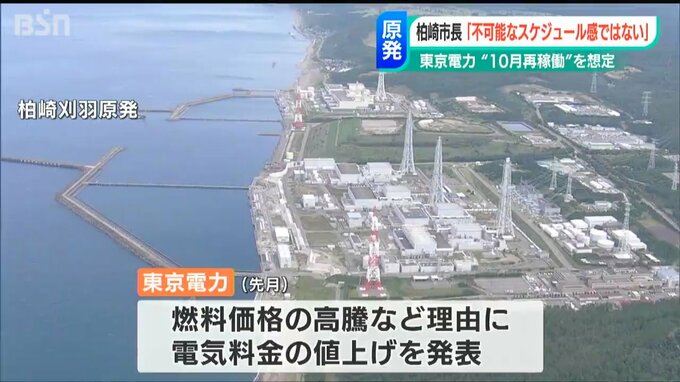 電気料金を算定するための前提条件の一つとして、東京電力が10月に柏崎刈羽原子力発電所を再稼働すると想定したことについて、新潟県柏崎市の桜井雅浩市長は「秋は不可能なスケジュール感ではない」との見方を示しました。