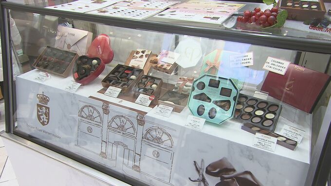 2月14日のバレンタインデーを前に、お店にはたくさんのチョコレートが並んでいます。