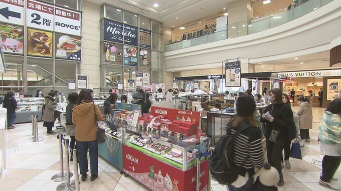 福島県郡山市にあるうすい百貨店のチョコレート売り場から中継でお伝えします。