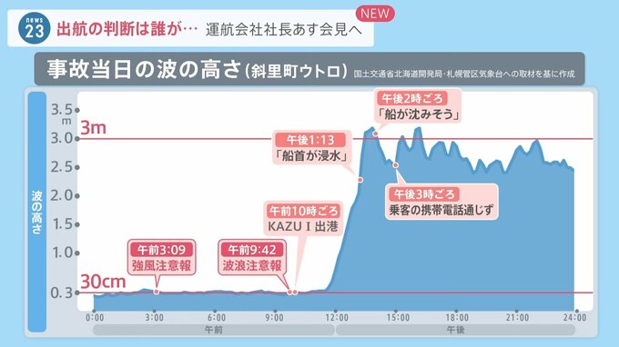 事故当日の斜里町ウトロの波の高さを示すグラフを見ると、事故を起こしたKAZU Iの出港前、波の高さは30センチほどでした。