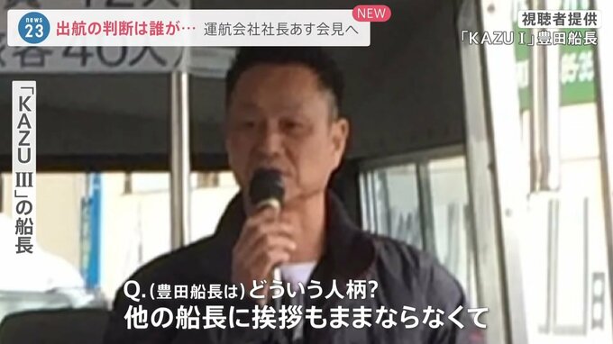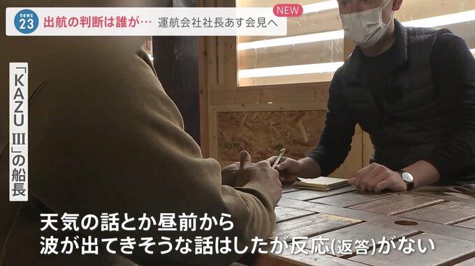 「もちろん(KAZU Iの豊田)船長とは朝、話をしました。天気の話とか昼前から波が出てきそうな話はしたが反応がなかった。天気予報をちゃんと確認してないのかなという印象は受けました」