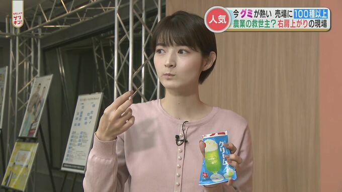突然ですが、グミは好きですか?今グミブームがきていると言われていますが、このブームはお菓子業界だけにはとどまっていないようです。後生川 凜 アナウンサー「ズラリと並んだお菓子。このほとんどがグミなんで…
