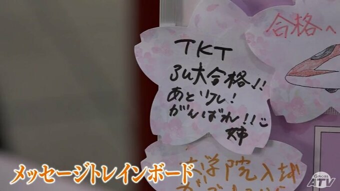 また、「メッセージトレインボード」には受験生の家族や友人からの応援メッセージや受験生の意気込みが掲示され、新幹線が合格の春へと運んでくれそうです。