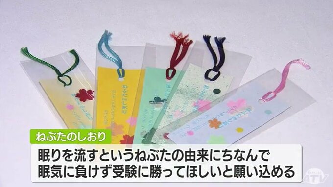 色鮮やかなしおりは、眠りをながすというねぶたの由来にちなんで、眠気に負けず、受験に勝ってほしいとの願いが込められています。