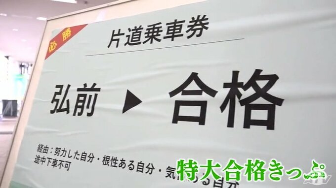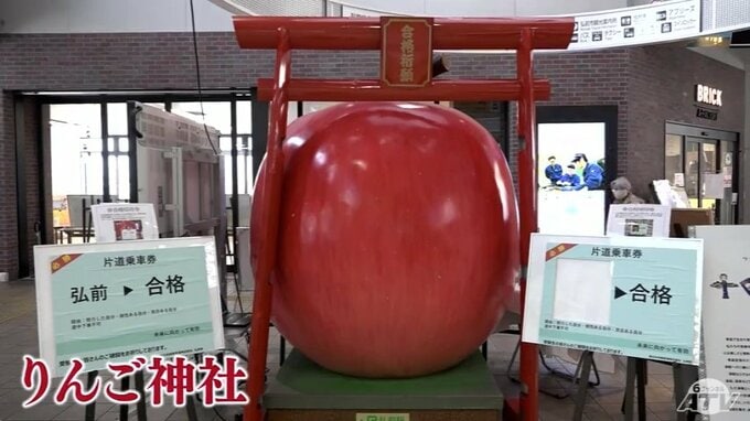 受験生を応援するイベントはJR弘前駅でも開催されています。改札口近くにお目見えしたのは、「りんご神社」です。特大の合格きっぷを設置して受験生にエールを送っています。