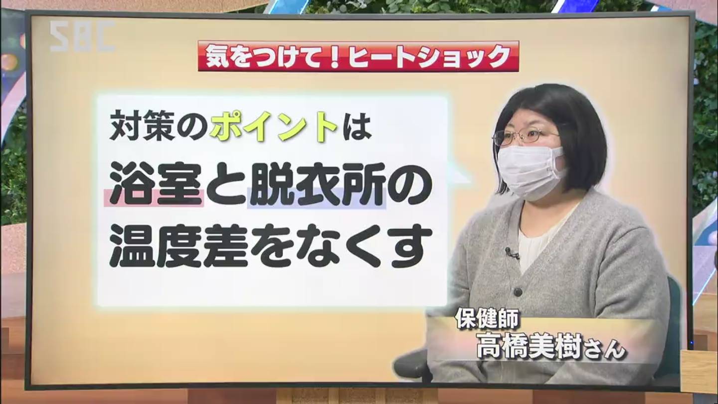 「1日の生活の中で寒暖差が大きい場所でかつ血圧の変動が大きい動作を取るのが入浴中だと言われています、脱衣所ですと小さい暖房器具を置いてみて暖めてみるとか、浴室のほうは給湯はシャワーから給湯して湯気を立たせて入っていただくとかお風呂のフタをせずに給湯してみるとか、自分でもできそうだなとかきょうからできそうだと思うところから始めていただいて冬を乗り切っていただければ」