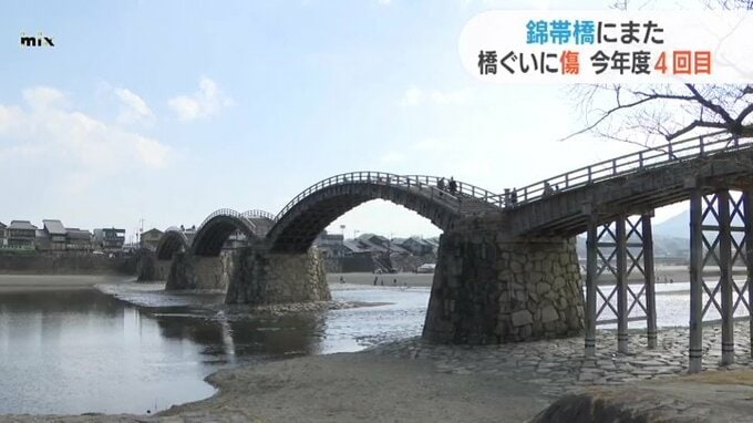 国の名勝、錦帯橋がまた傷付けられました。今年度、4件目で岩国警察署は文化財保護法違反の疑いも視野に入れ、捜査しています。岩国市によると、今月1日第5橋の橋杭に傷を見つけた市民から市に通報があったという…