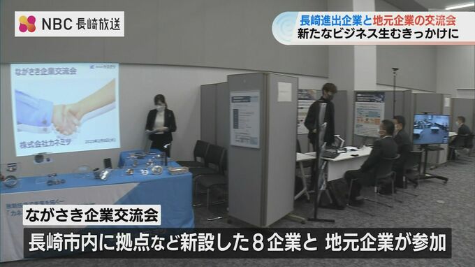県外から長崎市に進出した企業と地元企業を結び付けて長崎の産業の活性化につなげようと8日、出島メッセで『ながさき企業交流会』が開かれました。自動車部品製造開発などを行っている株式会社カネミツ 担当者:「…