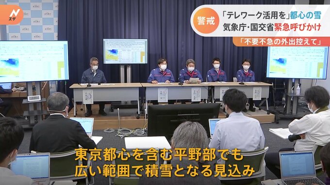 関東甲信地方などでは、あす朝から広い範囲で雪が降り、東京都心を含む平野部でも広い範囲で積雪となる見込みで、気象庁と国土交通省は、不要不急の外出を控えるよう緊急の呼びかけを行いました。気象庁によります…