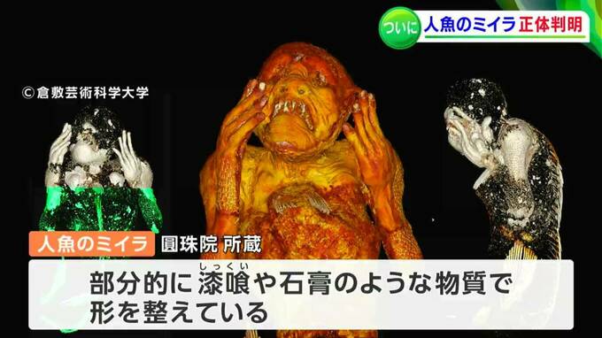 (倉敷芸術科学大学 加藤敬史教授)「自分の心の中に、どこかに人魚がいたらいいなと思いながら調査しましたけれども、とにかく精細に細かく見ていくことで色々な情報が出てきて、今回精細なX線CTを撮ったことで中に入っているものだとか微物を詳しく見ることができました。それが非常にワクワクした楽しい時間だったと思っています」